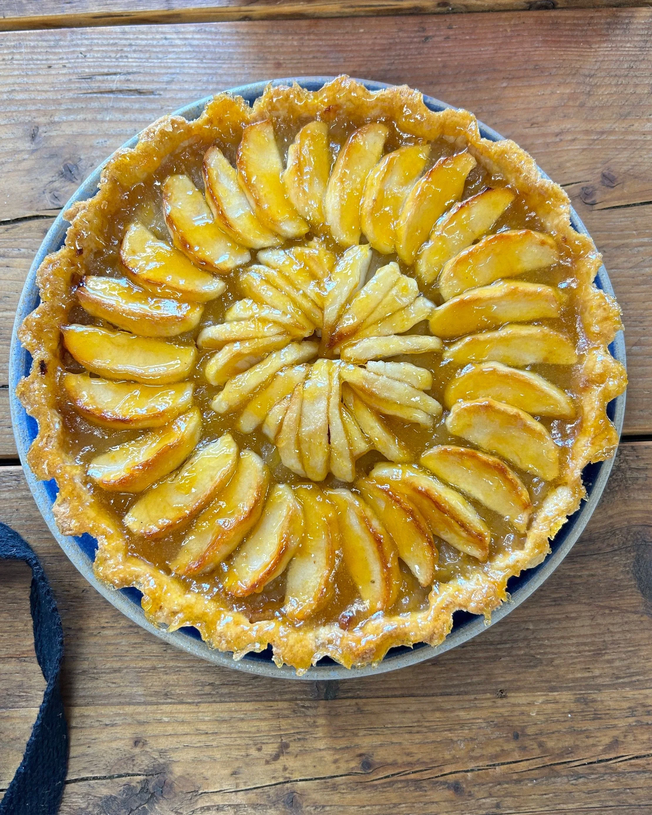 An illustrious tart: Juliette’s tart aux pommes that won her office staff bake off. Not strictly in keeping with ember’s ethos as not woodsmoked, nose to tail, wassail or English, but a celebration of apples none the less!